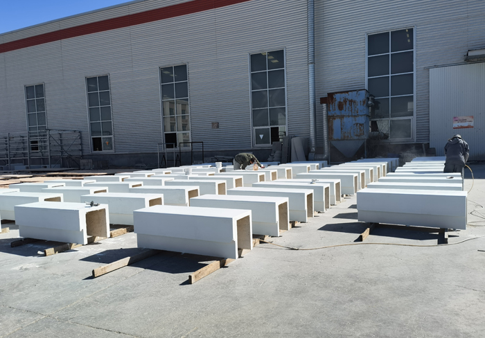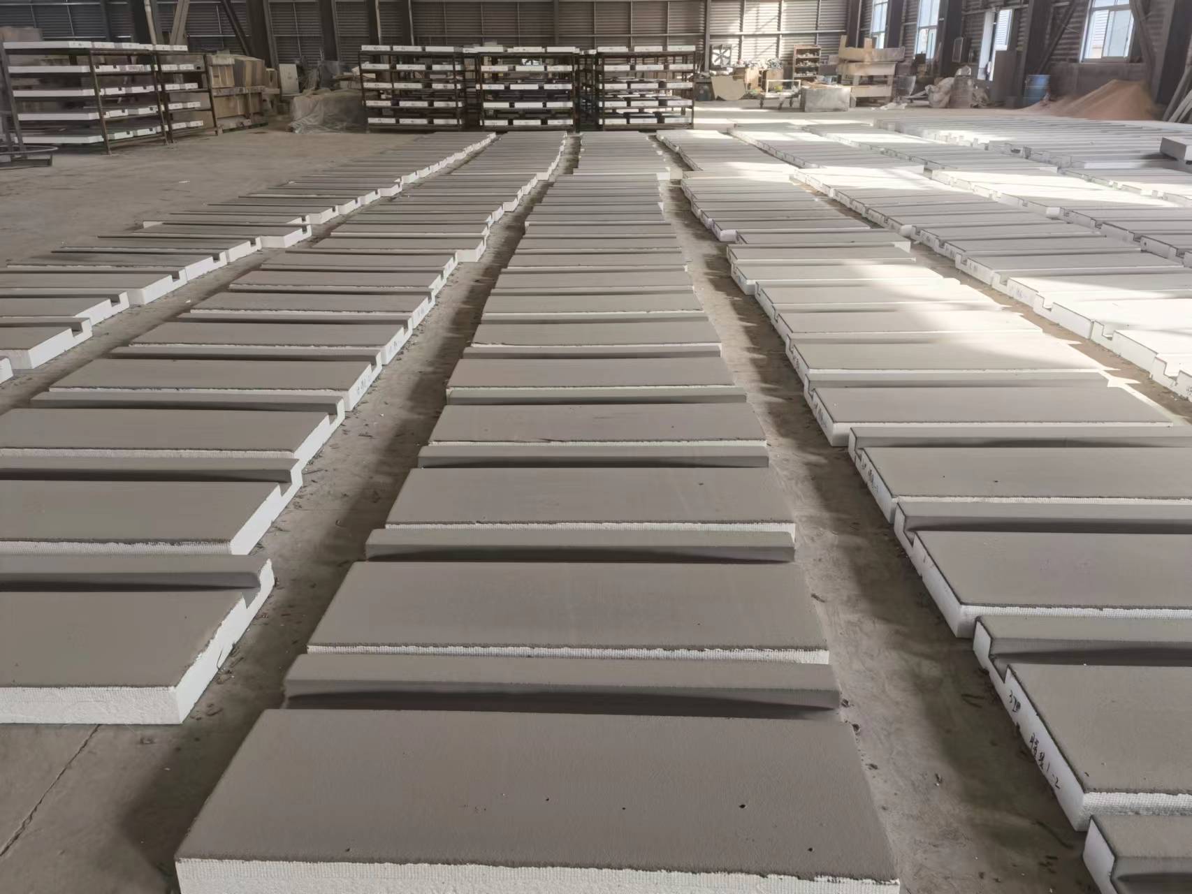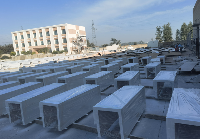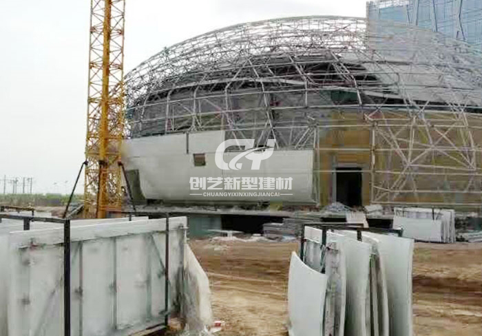 采用機械噴制加工,高溫養護成型,大型構件采用鋼骨架節點方式